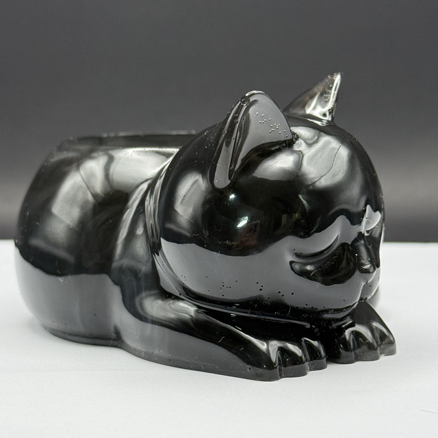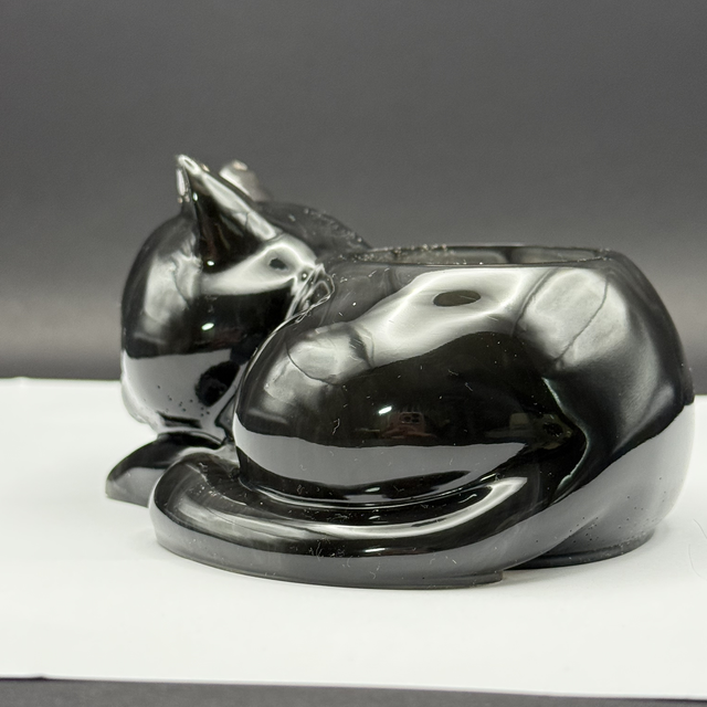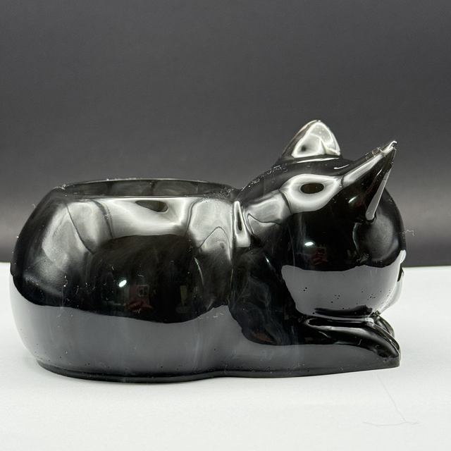 Adoptez ce charmant porte-bougie en résine époxy noire, idéal pour créer une ambiance chaleureuse et feutrée. Représentant un chat assoupi, cette pièce artisanale ajoute une touche d'élégance mystérieuse à toute décoration.