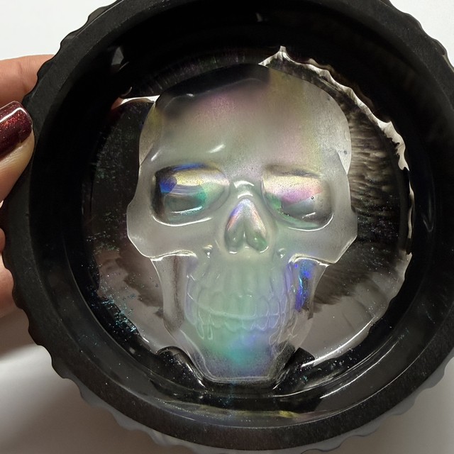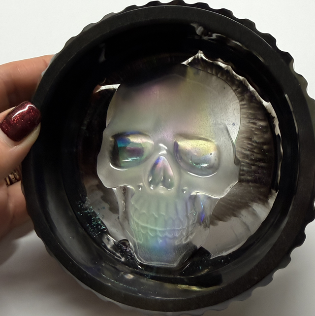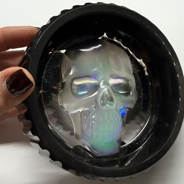 Cendrier "Crâne Éthéré" – Résine Époxy Holographique & Phosphorescente