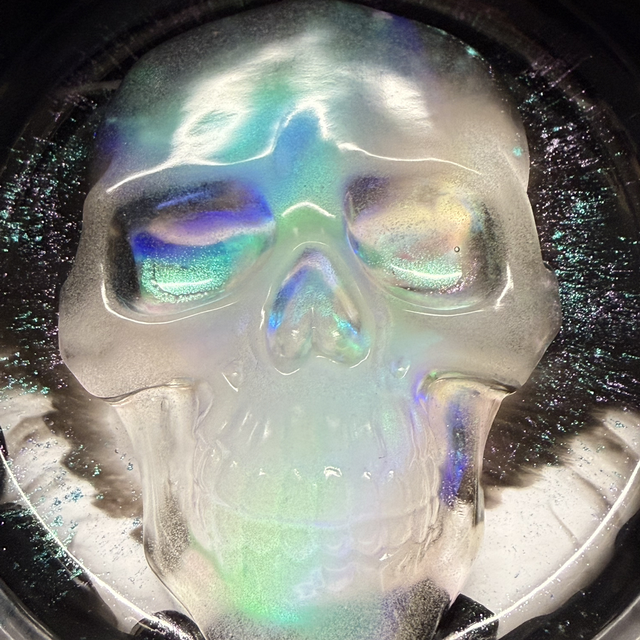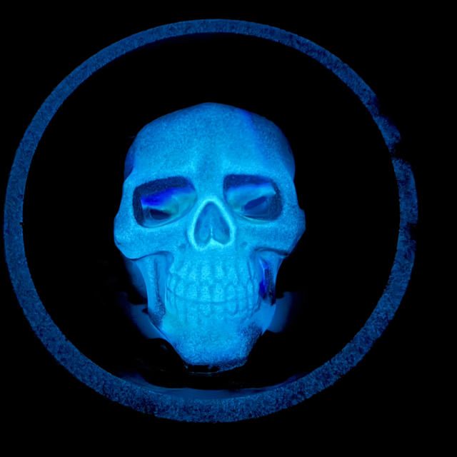 Grâce à ses pigments spéciaux, il offre un effet holographique aux reflets changeants selon la lumière du jour. Une fois la nuit tombée, la magie continue : le crâne se pare d'une lueur phosphorescente envoûtante, facilitant son utilisation même dans l'obscurité.