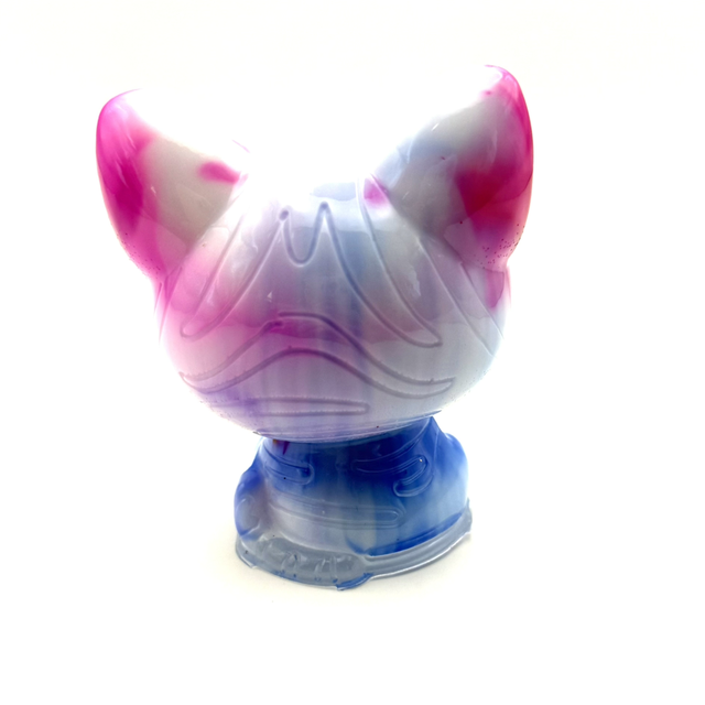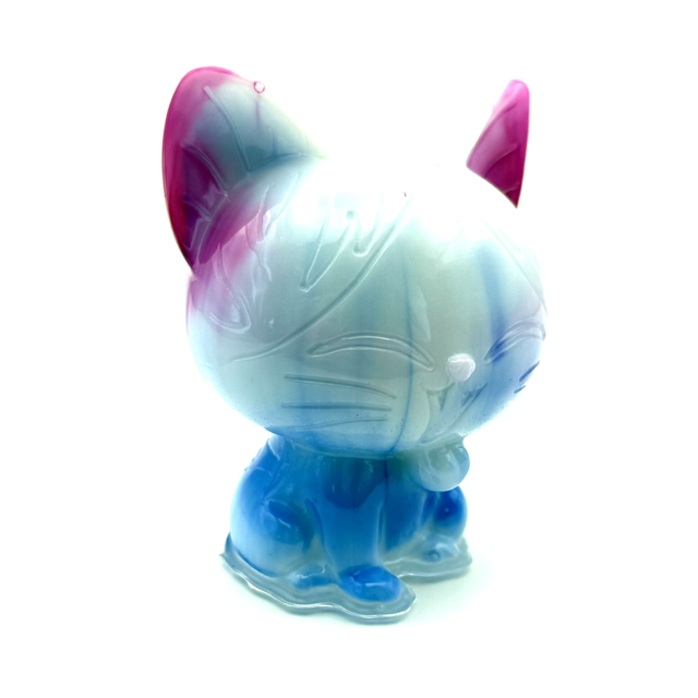 Petit chat chinois Porcelaine dans les tons blanc, rose et bleu, en résine époxy, fait main, unique exemplaire.