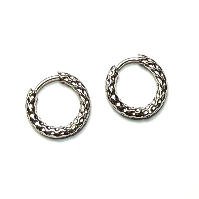 Ces mini-créoles argentées texturées sont l'accessoire polyvalent indispensable. Leur motif ciselé apporte un éclat élégant, tandis que leur format les rend idéales pour un port quotidien.