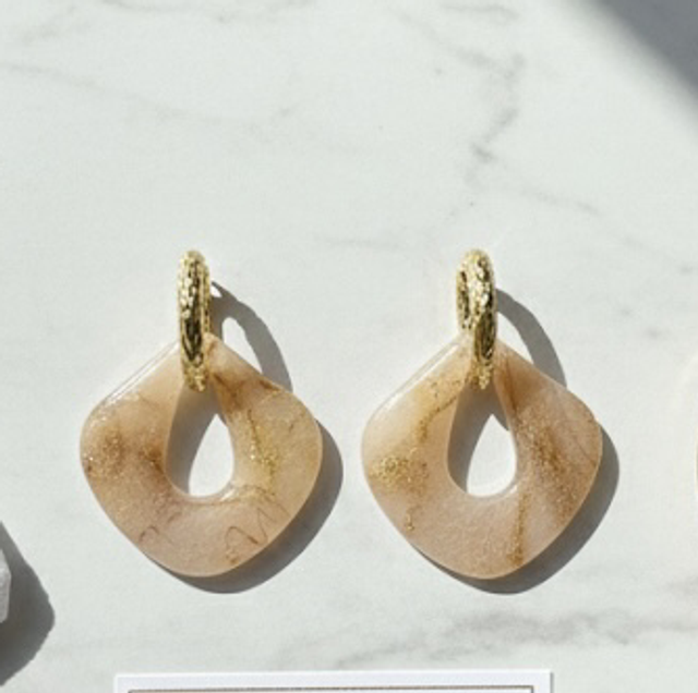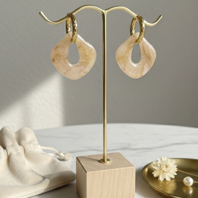 Ces pampilles uniques, confectionnées à la main en pâte polymère, sont une véritable ode à la lumière. Issues de la collection Éclat d'Ambre, elles arborent un motif marbré semi-translucide qui capte les rayons du soleil pour un effet subtil et raffiné.