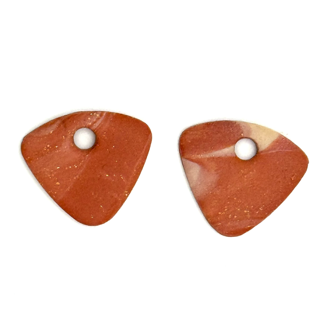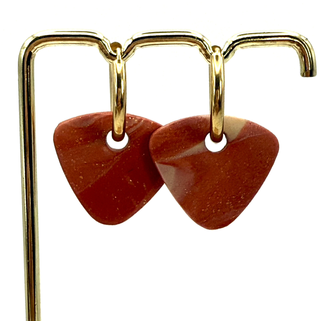 Pampilles Tricia couleur terre d’argile avec min éclat doré, en pâte polymère recouverte de vernis mat satiné des 2 côtés, réversibles, fait main en unique exemplaire.
