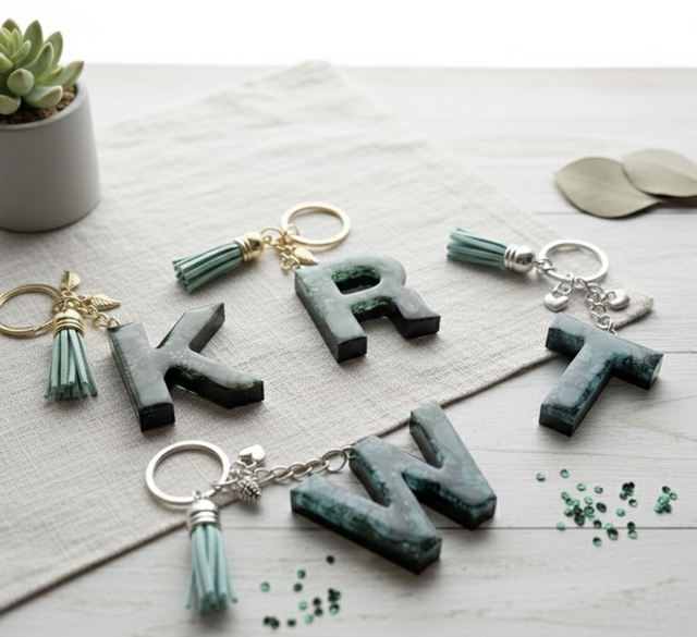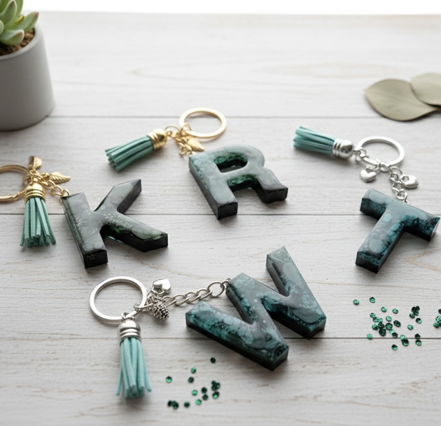 Porte-Clés Initiale Artisanale – Nuances Vertes & Émeraude