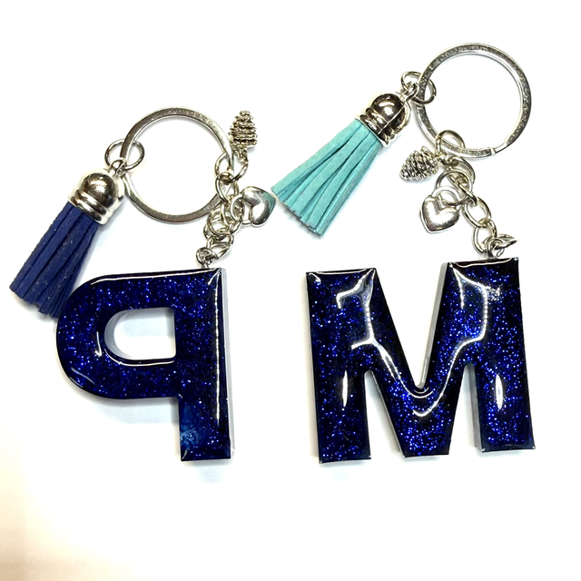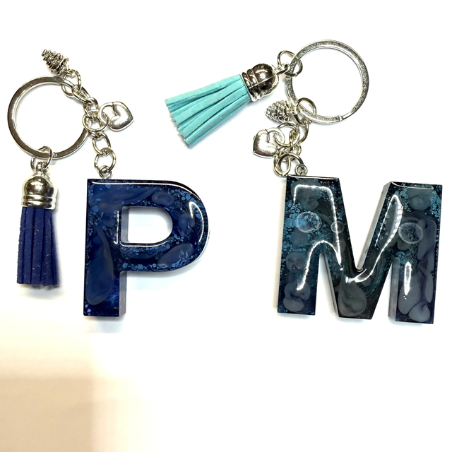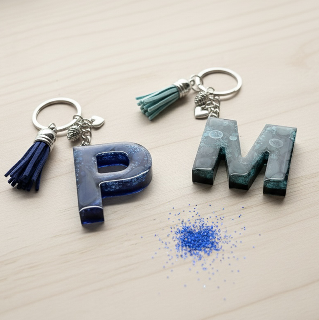 Porte-Clés Initiale en Résine – Collection "Bleu Abyssal"
