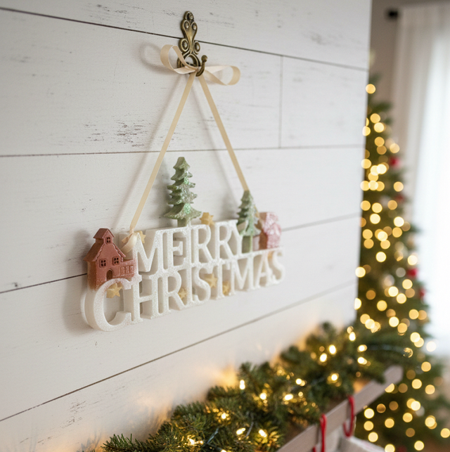 Ajoutez une touche d'éclat et de magie festive à votre intérieur ou à votre porte d'entrée avec notre charmant panneau décoratif "Merry Christmas".