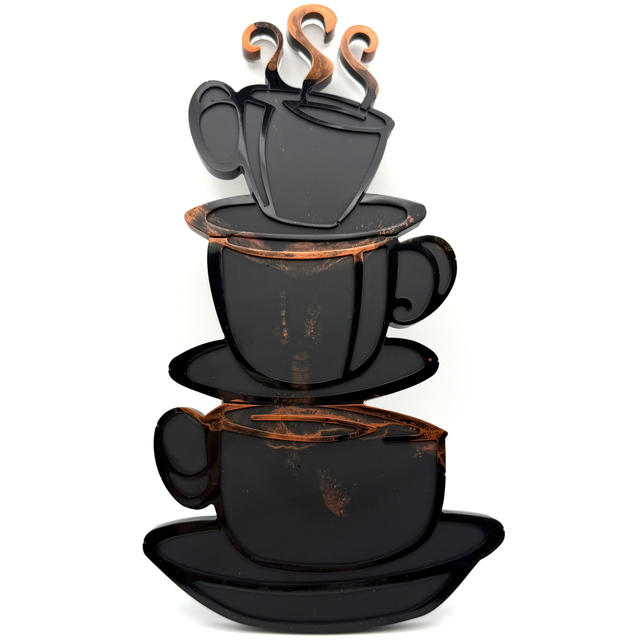 Joli trio de tasses à café dans les tons noir et rouge cuivré, à la fois mat et brillant, en résine époxy, fait main, unique exemplaire.